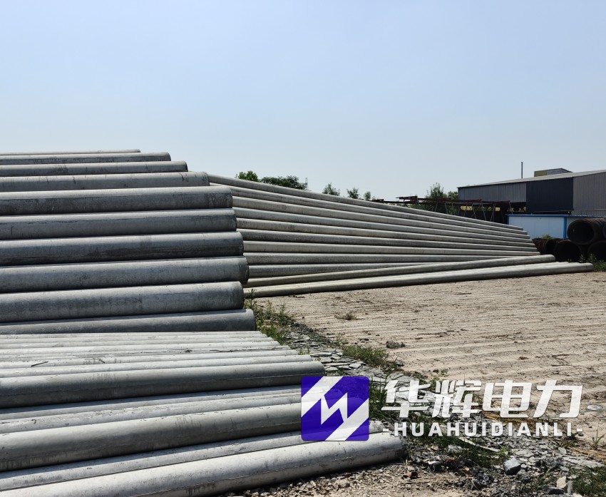 8米振安水泥电线杆通常采用钢筋混凝土离心成型工艺,杆体呈锥形结构,梢径150mm-190mm,根径230mm-270mm,壁厚40mm-50mm。根据标准GB/T4623-2014,产品混凝土强度等级不低于C40,主筋采用HRB400级钢筋,配筋量根据抗裂弯矩要求设计,标准抗裂弯矩可达12-18kN·m,破坏弯矩不小于24kN·m。杆体重量约0.5-0.8吨,运输安装便捷,适合人工或小型机械施工。